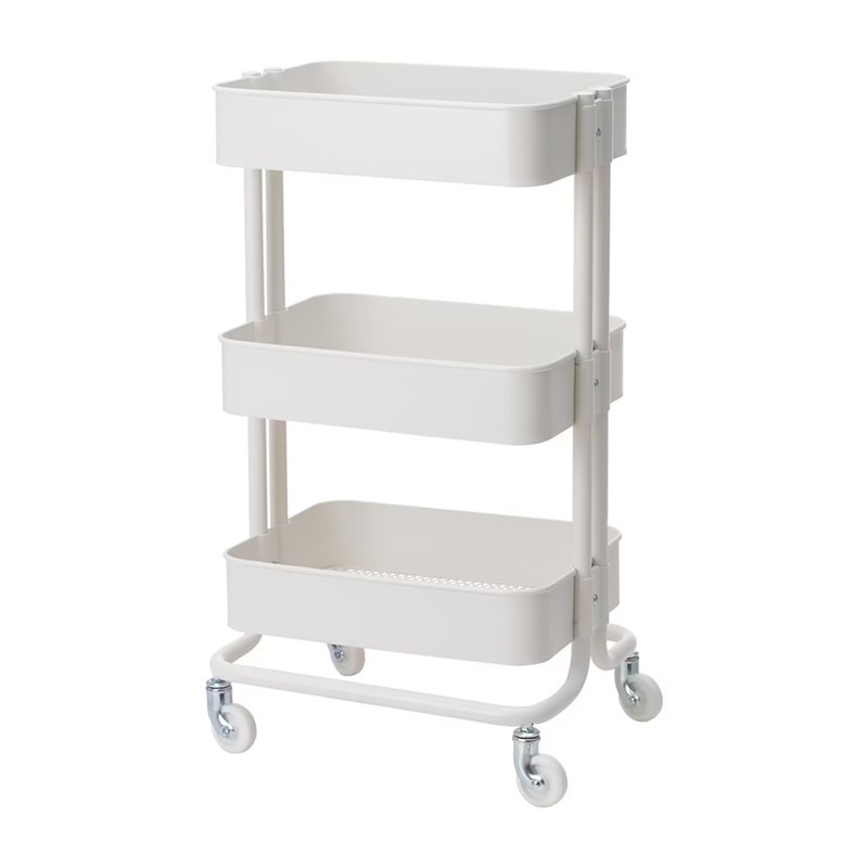 Masa servire tip carucior, 35 x 45 x 78 cm, otel, maxim 18 kg, Alb