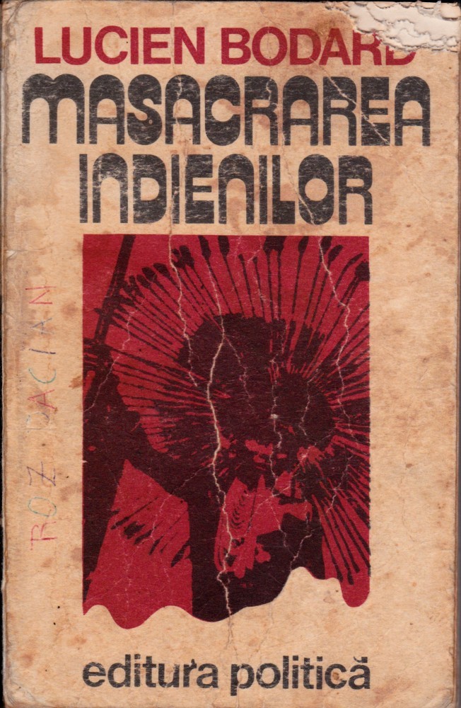Masacrarea indienilor, de Lucien Bodard, editura Politica, Bucuresti, editia 1976, 256 pagini. Pentru Bucuresti fac predare personala. Pentru alte localitati 11 ron taxe postale cu ramburs sau 5 ron colet simplu cu plata prin virament bancar. Pentru produse comandate in valoare de 50 ron trimit gratis colet simplu sau 5 ron cu ramburs, iar la 100 ron comanda expediez gratis cu ramburs.