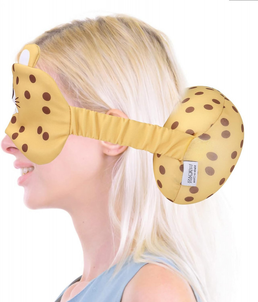 Masca de dormit, Cyrax, 2 in 1, cu Tetiera, din Particule de Spuma si Bumbac, Model Leopard, Portocaliu