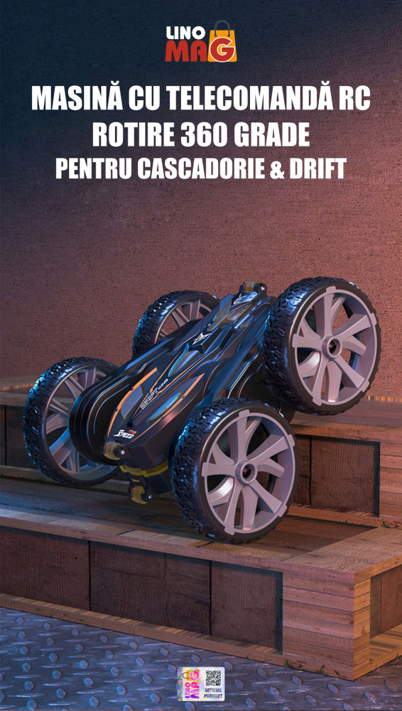 MASINA CU ROTATIE 360°: Nu numai că poți să rulezi înainte, înapoi, să faci viraje de 180° la dreapta și la stânga, dar poți și să faci rostogoliri și rotiri la 360°, să conduci pe ambele părți pentru o experiență de joc unică. Conducerea pe ambele părți facilitează trecerea peste obstacole.