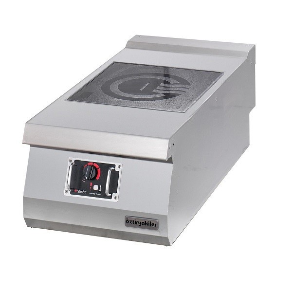 Masina de gatit profesionala-plita inductie-40x70cm Masina de gatit profesionala cu plita vitroceramica cu inductie si pozitionare pe bancul de lucru Alimentare: 230V Putere: 3.5 kW Dimensiuni: 400*700*280 mm Constructie din inox alimentar cu grosime de 2 mm Echipata cu termostat de siguranta Suprafata de gatit poate fi folosita in proportie de 95% fara zone reci Sistem de detectare al tigaii (vasului de gatit) sistemul de incalzire se activeaza doar la contactul vasului cu suprafata ceramica si incalzirea se opreste cand vasul este indepartat. Control precis al temperaturii datorita sistemului de detectare al diametrului vasului in care gatiti. Fabricat in Turcia-OZTI Masina de gatit profesionala-plita inductie-40x70cm