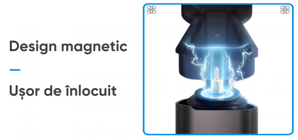 Schimbarea capetelor se face rapid si fara efort, datorita sistemului magnetic inovator, oferindu-ti mai mult timp pentru a te bucura de rezultatele finale.
