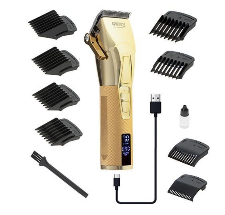 Masina De Tuns Si Aparat De Ras, Camry, CR2835G, Multifunctional, Profesionala, Afisaj LCD, 100 W, 2 Viteze, Pentru Acumulator, Ceramic/Titan, Auriu