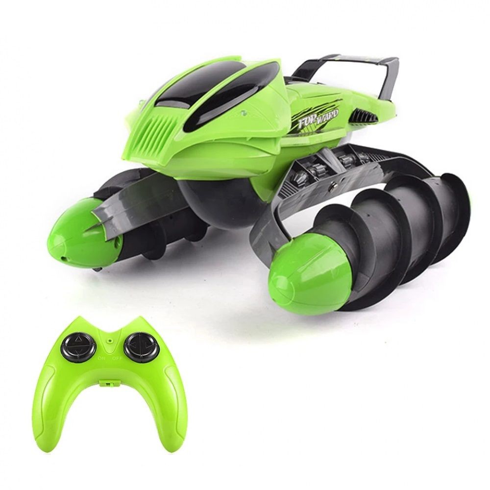 Daca doresti sa faci un cadou deosebit cuiva drag,acum ai gasit ceea ce cautai,o masina amfibie capabila sa mearga pe orice teren :pe apa,nicip,zapada, iarba, uscat...telecomanda full control, acumulator.Masina amfibie capabila sa mearga pe apa,uscat,zapada,nisip,teren accidentat sau pe iarba.Este un cadou uimitor pentru copilul tau.Controlat de radiocomanda complet functionala, va duce distractia la un nivel inalt. Amfibia se poate deplasa in toate directiile si poate efectua rotiri la 360 de grade!Specificatii: Material principal: plastic Dimensiune: 36x26cmRaza actiune telecomanda: aproximativ 70 de metri (spatiu deschis)Timp de incarcare: 3-4 oreTimp de functionare: 25 de minute Baterie: 7.2v 700mAh Telecomanda: 2X1.5V "AA" (Bateriile nu sunt incluse) Pachetul include: 1x masina amfibie 1x telecomanda 1x baterie 1x incarcator 1x manual SpecificatiiCaracteristici GeneraleTip Cu telecomandaPentru BaietiVarsta + 3 aniMaterial PlasticCuloare Negru/RosuSpecificatii TehniceRaza de actiune 70 m
