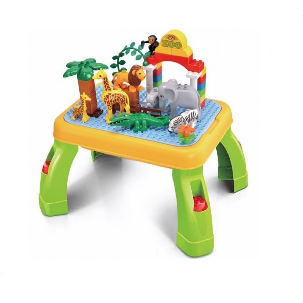 Uimitoarea masuta educativa Lego Zoo are o multime de caracteristici pentru a dezvolta educatia timpurie a copilului.Exista o multime de moduri in care copilul tau se poate juca si invata, masa avand o enciclopedie completa de animale.Masuta educativa tip Lego Zoo are figurine pe care copilul le poate aseza cum doreste, isi dezvolta abilitatile creative, de asemenea, poate scrie si desena pe masa iar cand joaca s-a terminat, are o sectiune de stocare cu ajutorul careia copilul dvs. isi dezvolta si abilitatile de organizare. Cu toate aceste caracteristici fabuloase, cum sa nu-o faci cadou persoanei dragi?Recomandata si pentru dotarea gradinitelor,spatiilor de joaca, cluburi de copii etc.Setul include urmatoarele accesorii : o masuta de activitati ce se poate demonta si figurine de marimi si culori.Copilul tau isi va dezvolta imaginatia si creativitatea.Si noi, ca parinti, credem in fericirea copiilor.Cu acest produs ai parte de dezvoltare si joc, totul intr-un locDimensini masuta: H 28CM/L 53CM,l 40.5cm/dimensiune placa lucru 38.5x25.7cmContine 55 pcs