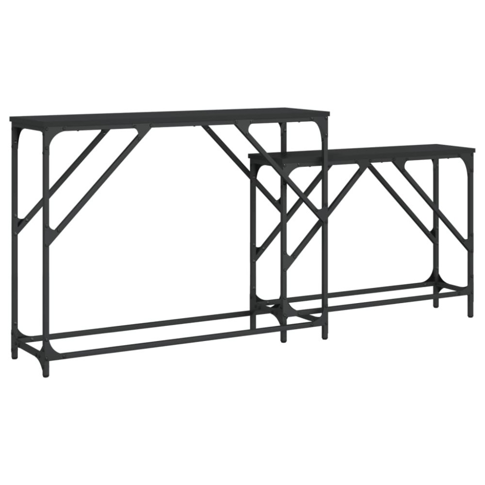 Masute console suprapuse, 2 buc., negru, lemn prelucrat