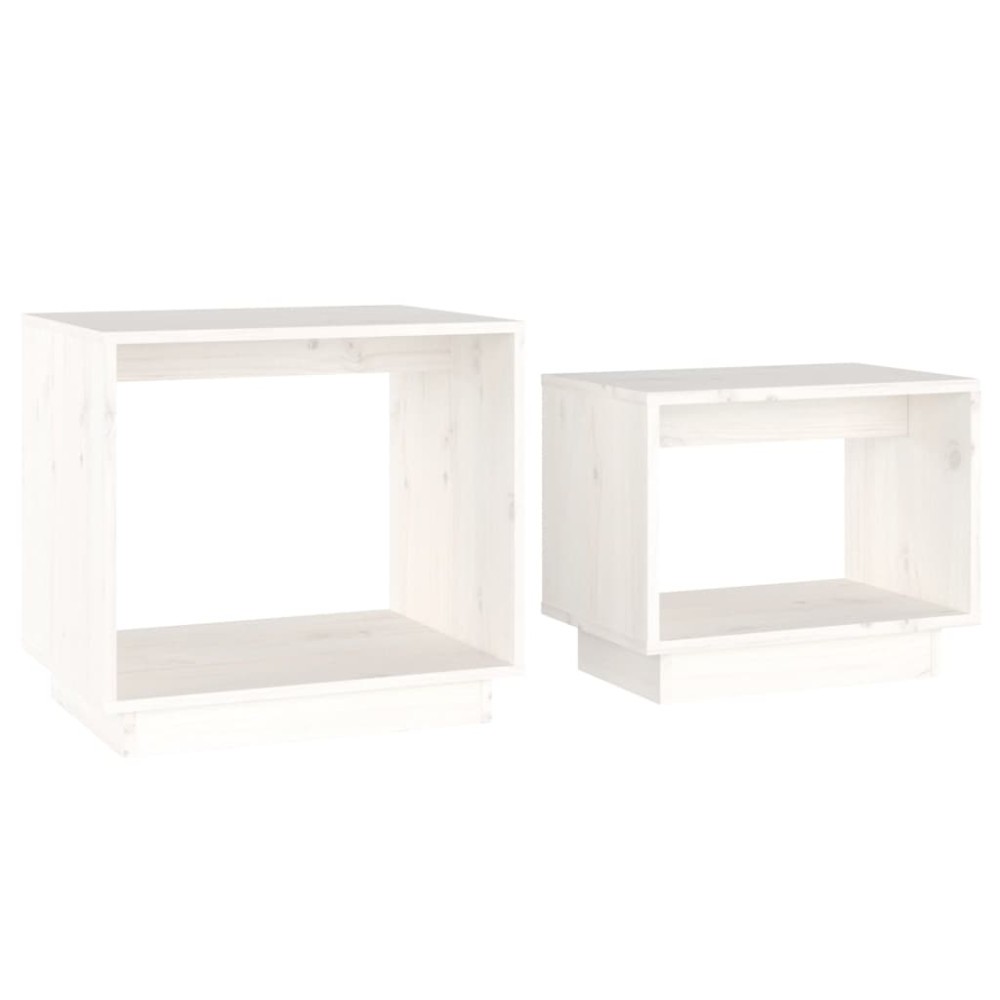 Masute de cafea suprapuse, 2 buc., alb, lemn masiv de pin