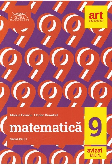 Lucrarea Matematica. Clasa a IX-a este disponibila in doua variante: varianta pentru tot anul scolar, dar si varianta impartita pe semestre. intre cele doua variante nu exista deosebiri de continut. Prezentul auxiliar a fost avizat de Ministerul Educatiei Nationale prin Ordinul nr. 3530 din 04.04.2018 si se regaseste la pozitia nr. 36 din anexa Ordinului. Lucrarea este realizata in conformitate cu Programa scolara in vigoare pentru disciplina Matematica (ciclul inferior al liceului) aprobata prin ordinul ministrului nr. 5099/09.09.2009. Matematica pentru clasa a IX-a: - filiera teoretica: profil real (matematica-informatica, stiinte ale naturii), - filiera vocationala: profil militar (matematica-informatica), - filiera tehnologica: toate profilurile (tehnic, servicii, resurse naturale). Lucrarea de fata din seria CLUBUL MATEMATICIENILOR: - ofera un continut corespunzator integral programei scolare in vigoare; fiecare capitol trateaza o sectiune distincta a programei, fiind impartit in teme care corespund cate unei unitati de invatare, facand astfel posibila o parcurgere organizata, sistematizata, a materiei; - constituie un sprijin consistent atat pentru elevi, cat si pentru profesori; fiecare tema ofera o sinteza completa, structurata, a teoriei, insotita de exemple si demonstratii (acolo unde este necesar); - cuprinde mai multe aplicatii decat majoritatea lucrarilor existente pe piata, exercitii variate, grupate pe trei niveluri de dificultate, marcate grafic cu o steluta (notiunile nou-predate), doua (fixarea si consolidarea cunostintelor) sau trei stelute (curriculum diferentiat pentru elevii de la filiera teoretica); - contine raspunsuri si solutii detaliate pentru toate problemele propuse; - acorda o atentie speciala, concretizata in explicatii suplimentare, problemelor de geometrie, pentru a face mai usoara acomodarea elevilor cu abordarea vectoriala a geometriei.