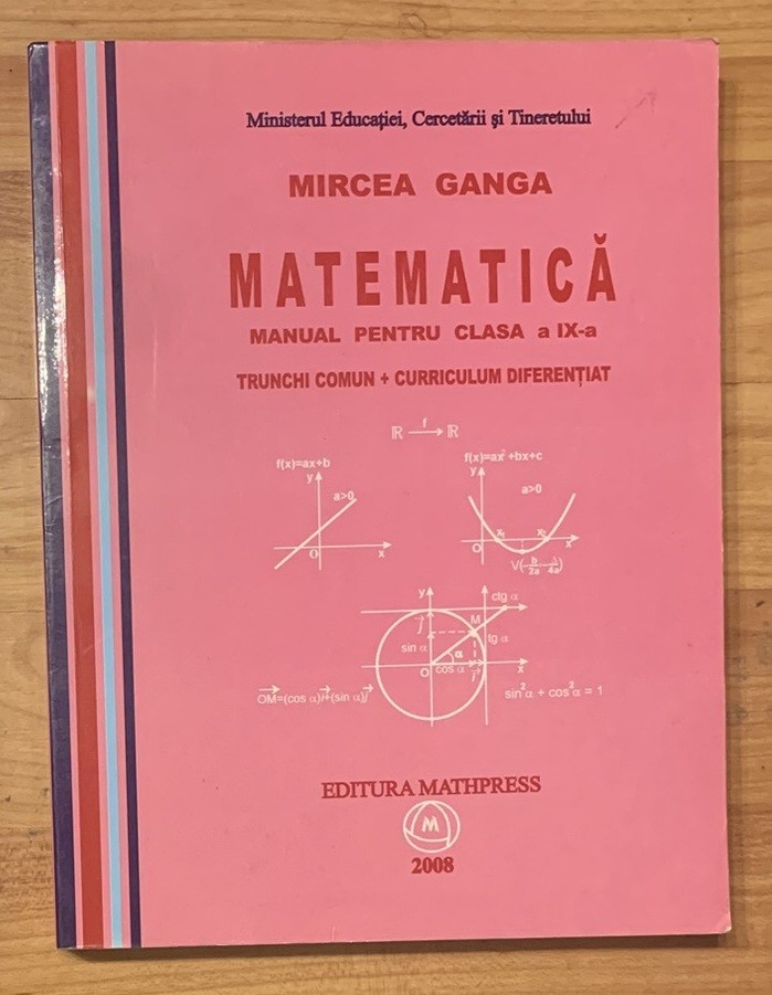 Matematica, manual pentru clasa a IX a, trunchi comun si curriculum diferentiat de Mircea Ganga. Editura MathPress, 2008, 375 pagini. Stare f buna