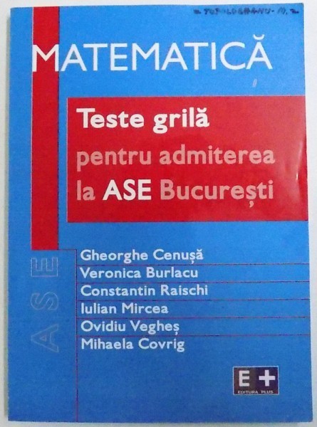 MATEMATICA - TESTE GRILA PENTRU ADMITEREA LA ASE BUCURESTI de GHEORGHE CENUSA ..MIHAELA COVRIG , 2005