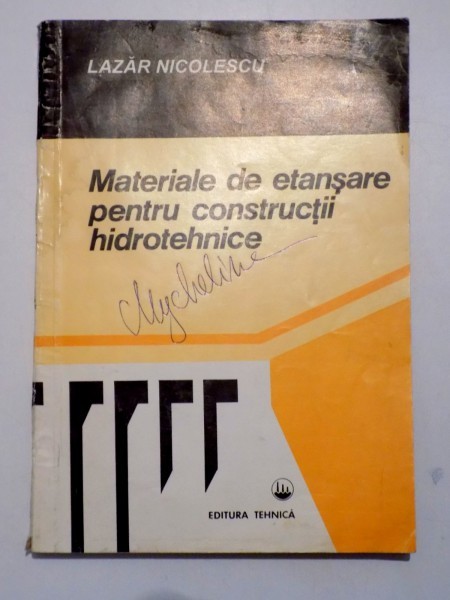 MATERIALE DE ETANSARE PENTRU CONSTRUCTII HIDROTEHNICE de LAZAR NICOLESCU, 1994