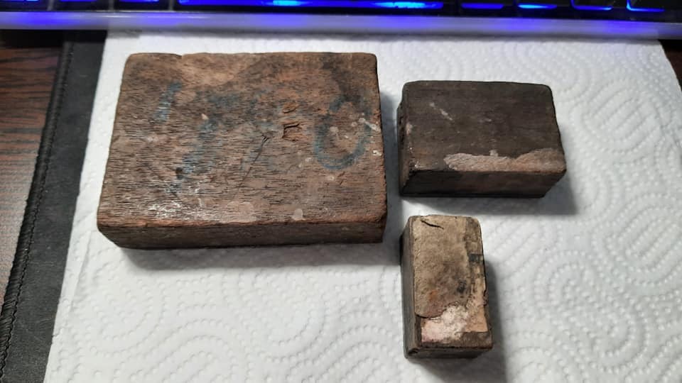 Matrite diverse vintage intre 1850 si 1900, deosebite, 290 grame toate, marimi, cea mare are 9,2 pe 7 cm si 25 mm grosime, cea mijlocie are 5,4 pe 3,7 cm si 24 mm grosime iar cea mica are 41 pe 23 mm si 23 mm grosime. Pe cea mica scrie : H. MILWARD & SONS IMPROVED DRILLED EYED CAST STEEL SHARP NO. 3. Pe cea mijlocie scrie : DICKINSON TOBACCO MANUFACTURER 22 BIG MARKET NEWCASTLE. UPON. TYNE.