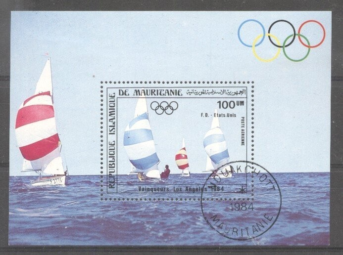 Mauritania 1984 Sport, Olympics, Ships, Navigation, perf. sheet, used M.252