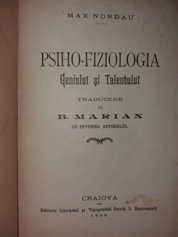 MAX NORDAU - PSIHO-FIZIOLOGIA GENIULUI SI TALENTULUI {1898}
