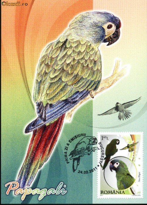 Maxima Ara colorat (Ara illiger).Stampilat cu prima zi a emisiunii la 24.02.2011.Stare buna.