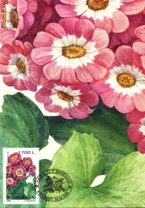 Maxima flori Cinerarie (Senecia cruentus D.C.).Stampilat cu Prima zi a emisiunii la 20.04.2000.Stare buna.