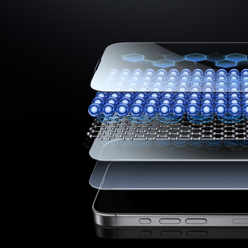 Un miez de sticlă temperată puternică și dură, straturi de carbonat întărit și un nanoravelaj garantează protecția completă a ecranului împotriva spargerii și deteriorării cauzate de impact.