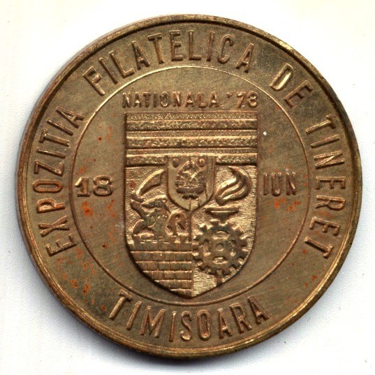 MEDALIE EXPOZITIA NATIONALA FILATELICA DE TINERET TIMISOARA 1973 ISTORIE NUMISMATICA PACE