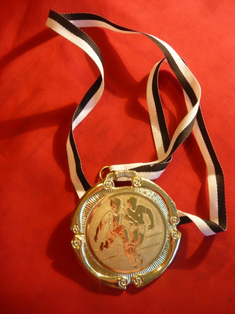 Medalie Fotbal loc I- decernata la Turneu SV Gablingen 2003, juniori ,h= 7,2 cm , metal aurit