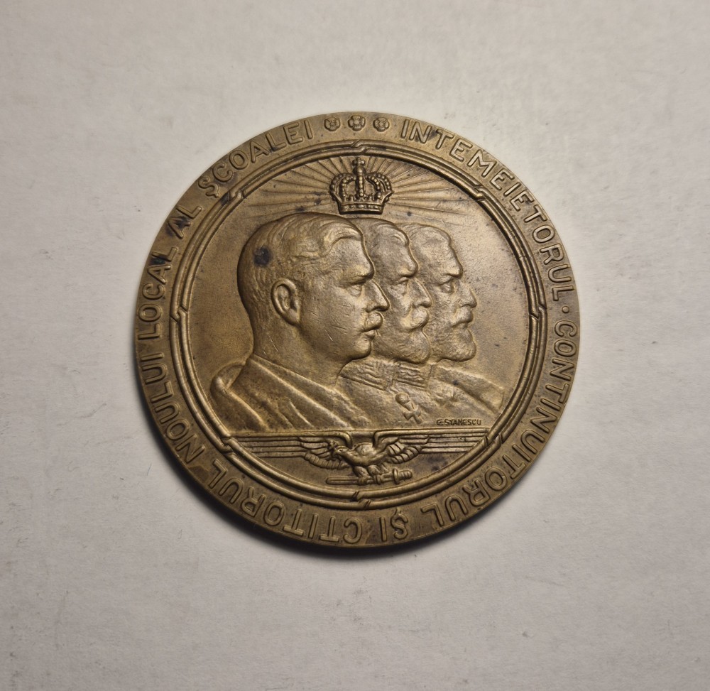 Medalie Scoala Superioara de Razboi 1939 - Regii Romaniei Carol II, Ferdinand si Carol I.