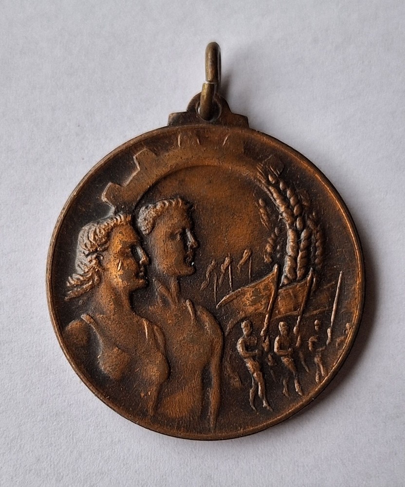 Medalie UTM (uniunea tineretului muncitoresc) sfarsitul anilor 1940, competitie sport muncitoresc de masa