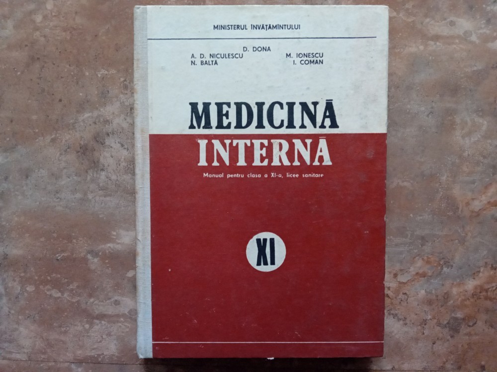 MEDICINA INTERNA - MANUAL PENTRU CLASA A XI-A LICEE SANITARE -D. DONA, V. ANDREI, A.D. NICULESCU, J. DIACONU, 1990