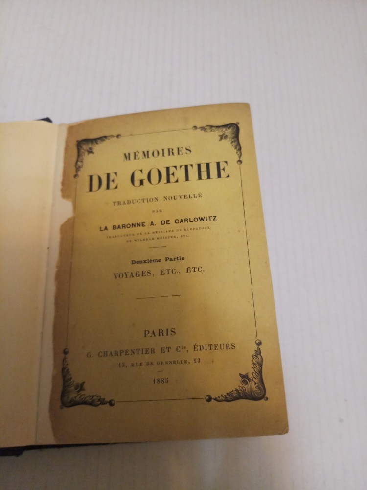 Memoires de Goethe - Traduction Baronne de Carlowitz