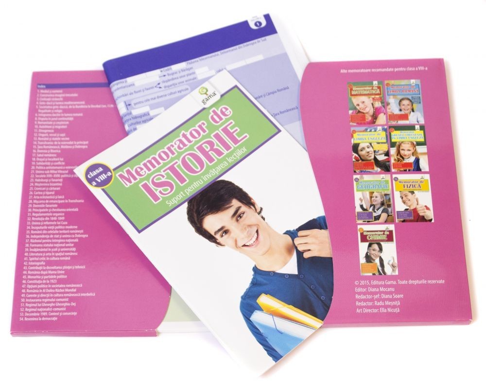 Memoratorul de istorie pentru clasa a VIII-a face parte din colectia de auxiliare aprobate de Ministerul Educatiei Nationale (MEN) si ofera elevului un suport pentru învatarea lectiilor. Clasa a VIII-a este primul an în care copilul va da teza la geografie sau istorie si ultimul în care se mai poate pregati pentru admiterea la liceu. Memoratorul contine fise de verificare si scheme de lectie ce folosesc formulari scurte si concise, tabele si evidentieri grafice, facilitând memorarea lectiei si fixarea cunostintelor.