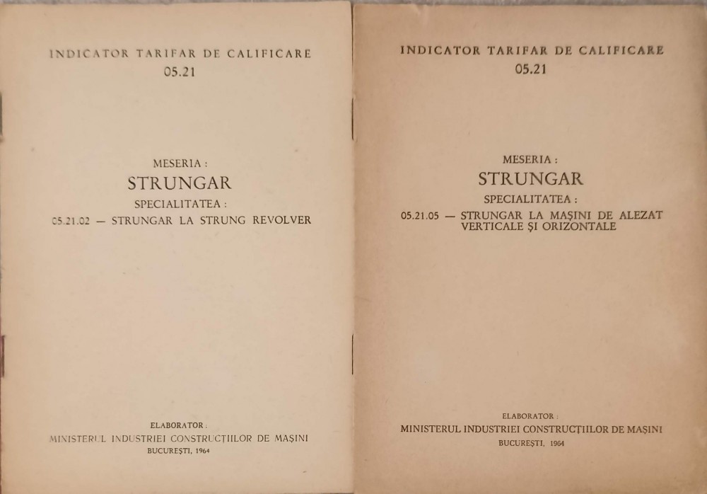 MESERIA: STRUNGAR VOL.1-2 SPECIALITATEA STRUNGAR LA MASINI DE ALEZAT VERTICALE SI ORIZONTALE. STRUNGAR LA S-240024