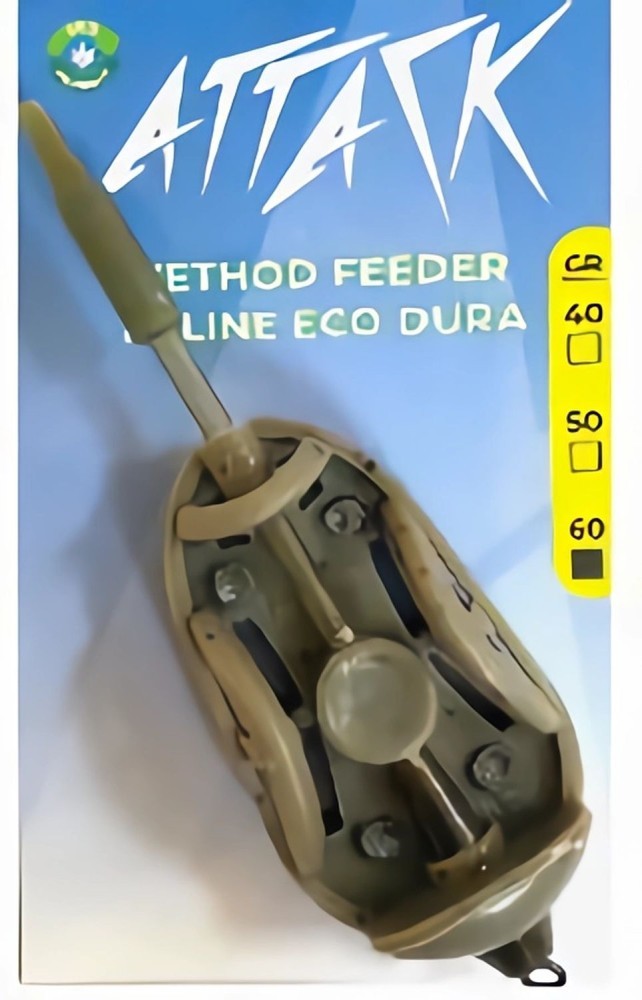 <h4>Method Feeder Attack Inline Eco Dura Zinc, 50g, 1buc/pac</h4><p><br>Eco Dura Zinc este cel mai nou model de momitor inline din gama Attack, cu un nou concept si o culoare de camuflaj ce se integreaza perfect in decorul substratului fara a trezi suspiciunea pestilor. Forma aerodinamica asigura lanseuri lungi si precise. Datorita bazei plate, acest tip de cosulet intotdeauna se va aseza corect pe substrat (cu partea superioara incarcata cu nada deasupra) si va oferi o prezentare impecabila a monturii. Pur si simplu asezati o cantitate mica de groundbait sau pelete in matrita de presare rapida corespunzatoare, puneti rigul in mijlocul method feeder-ului si apoi umpleti-l pana atinge partea superioara. Comprimati alimentatorul in momeala, impingeti butonul de eliberare si aveti "galusca" de nada perfect setata.</p><p><br><ul><li>Tip produs: Method Feeder</li><li>Producator: Attack</li><li>Model: Inline Eco Dura Zinc</li><li>Greutate: 50g</li><li>Tip momitor: inline (culisant)</li><li>Forma aerodinamica</li><li>Baza plata pentru stabilitate</li><li>Ideal pentru orice tip de nada</li><li>Culoare: kaki</li><li>Mod de ambalare: 1buc/pac</li></ul></p>