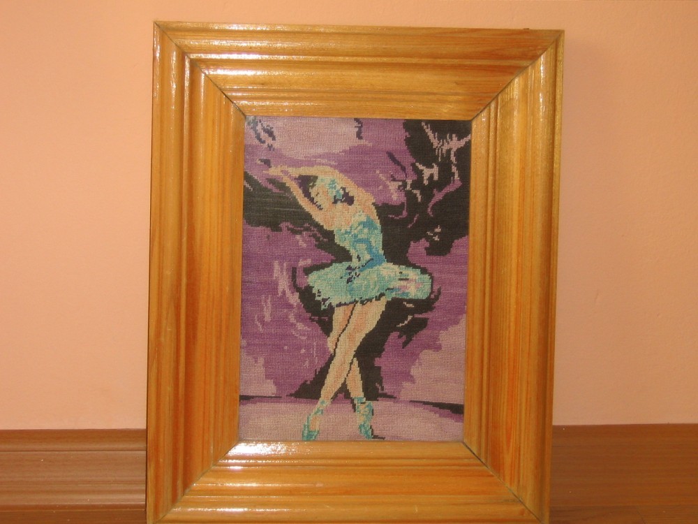 Mica Balerina este inramata are dimensiunea de 15x20cm.Are culori vii si este lucrat manual.