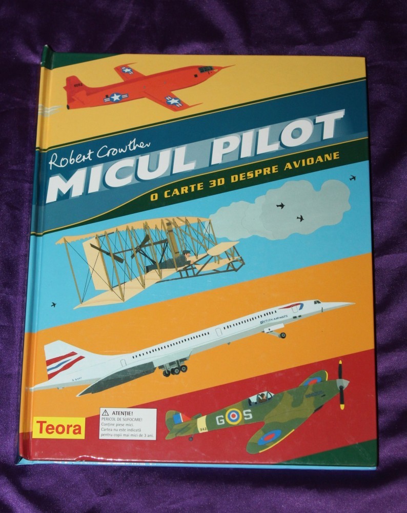 Micul Pilot de Robert Crowther, Carte pop-up interactiva, pentru copii, aviatie, 3D, avioane