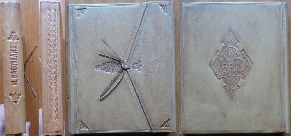 Dimensiuni: 22 x 18,5 cm, legatura integral piele tip mapa, denumita in termeni bibliofili persana, ambele coperte ale cartii mentinute in legatura, 320 pagini cu multe ilustratii realizate de Bordenache, etui de pastrare cu 2 intrari, specific acestui tip de legatura. Legatorul s-a semnat prin panson aplicat pe piele in interiorul copertei 2, stare excelenta. Lucrare legata de domnul Dogan Lucian.