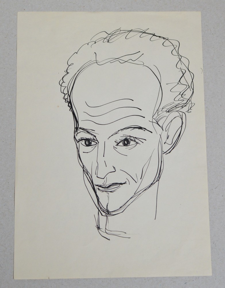 Mihu Vulcanescu portret de barbat penita pe hartie.
