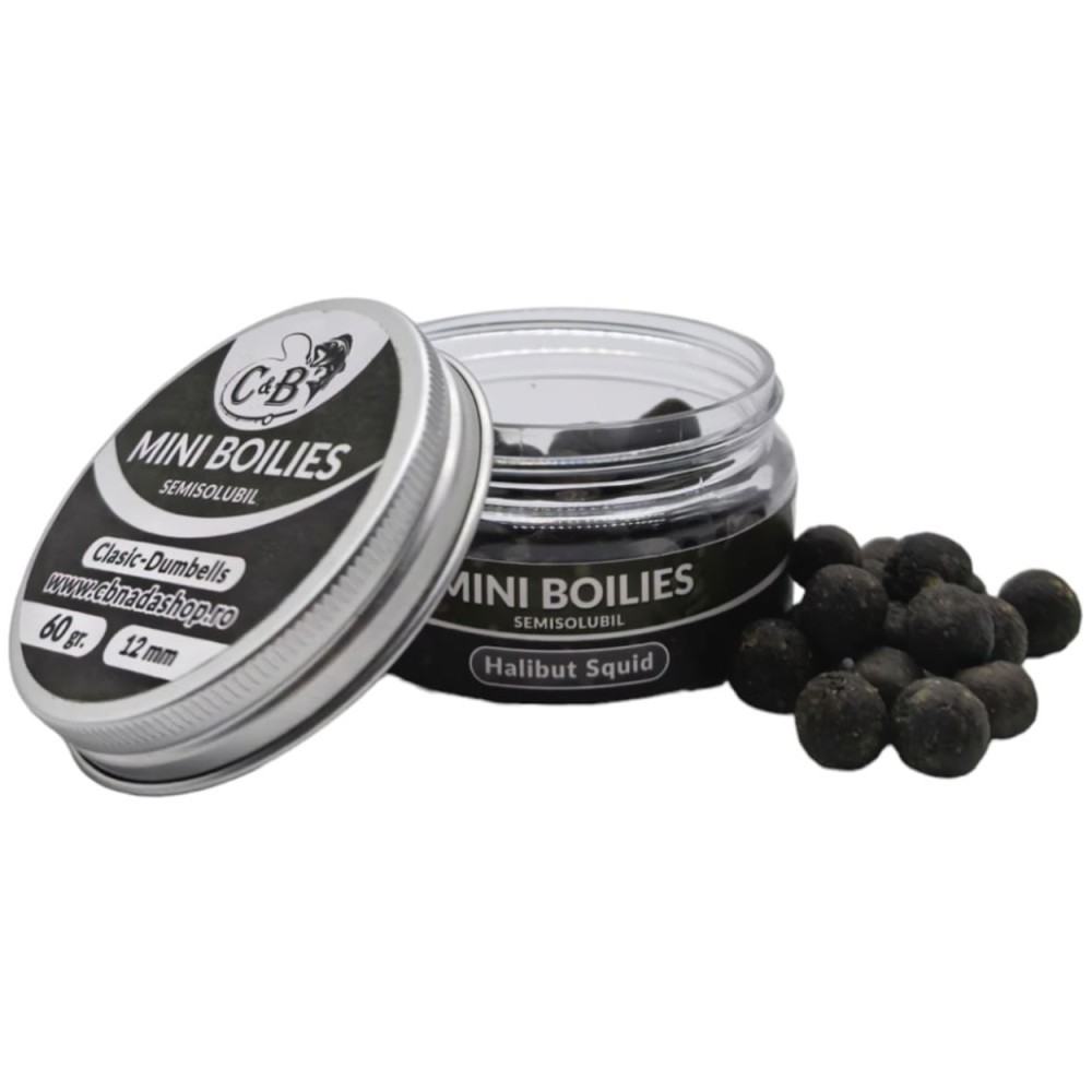 Mini Boilies C&B Semisolubil, Halibut Squid, Negru, 12mm, 60g