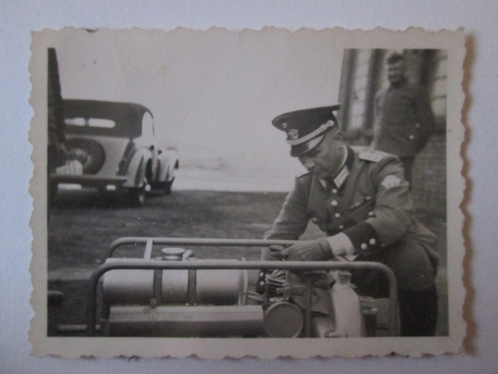 Mini fotografie 60 x 45 mm ofiter nazist anii 40,in fundal auto Mecedes