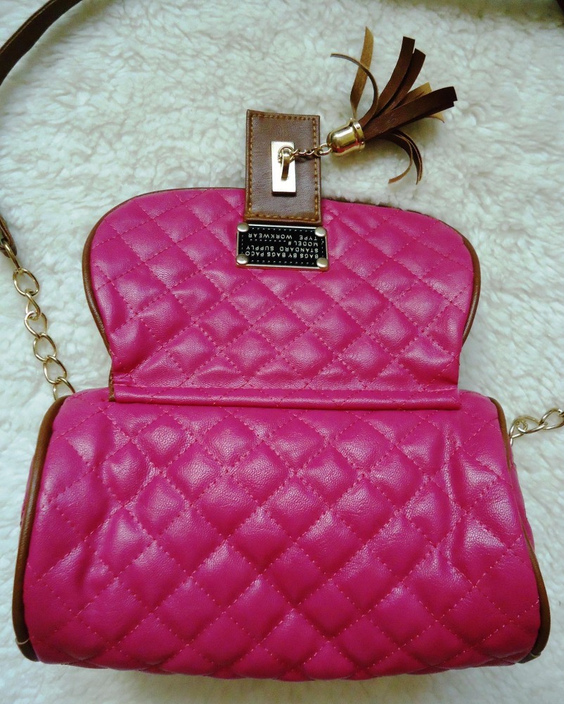 MINI GEANTA DAMA UMAR CILINDRICA PIELE ECOLOGICA ROZ FUCSIA CORDON MARO