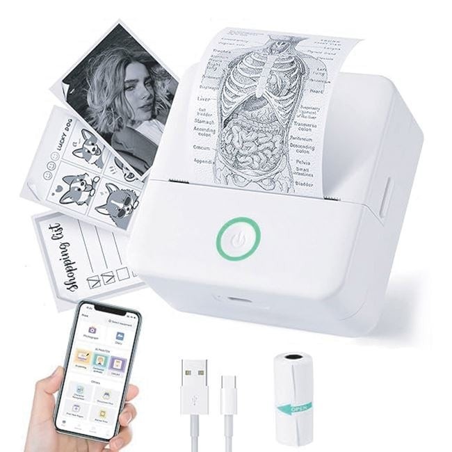 Mini Imprimanta Alba cu Cablus USB pentru Telefon Mobil 8.5x4x8.5cm