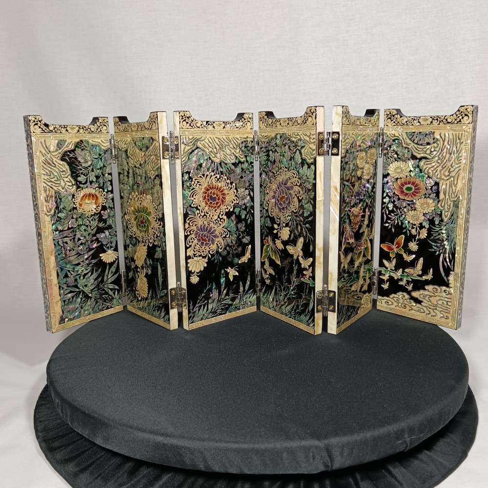 Mini paravan, insertie scoica abalone, Laque de Chine, vintage