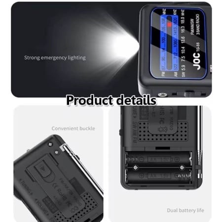 ✔ Functionalitate 3-in-1: radio FM/AM/SW + lanterna +