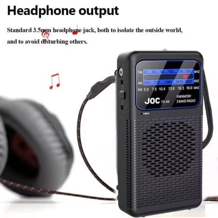 Asculta muzica, stirile si posturile preferate oriunde te-ai afla cu acest mini radio portabil de 3W, conceput pentru utilizare usoara si mobilitate maxima. Cu receptoare FM/AM/SW, alimentare pe baterii, lumina LED integrata si snur pentru transport, acest radio este alegerea perfecta pentru drumetii, calatorii, activitati in aer liber sau uz zilnic acasa. Designul compact si culoarea neagra il fac ideal pentru toate varstele si stilurile.