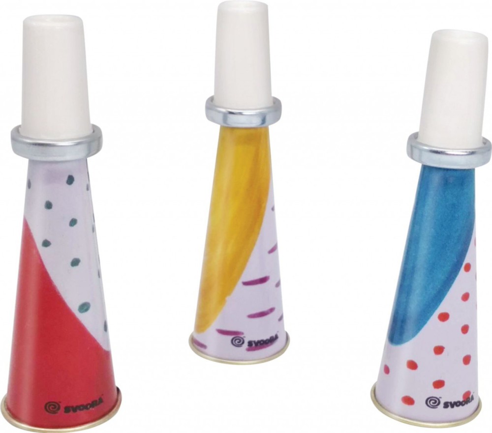 Mini trompeta metalica Pah-pa-rah! Pah-pa-rah! Ia mini trompeta si lasa spectacolul muzical sa inceapa! O colectie de 3 mini trompete metalice pentru explorari muzicale distractive! Varsta recomandata: + 4 ani. Fabricat din metal si plastic. Conform standardelor EN71, ASTM. AVERTISMENT! Contraindicat copiilor sub 3 ani. A se folosi sub directa supraveghere a unei persoane adulte. Producator: Svoora, Grecia Dimensiuni: 3 cm