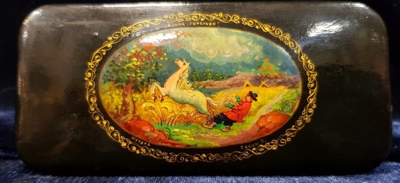 MINIATURA, CUTIUTA DIN LEMN, PICTATA MANUAL - RUSIA