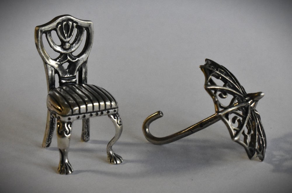 Miniaturi din argint - Scaun de epoca si umbrela - 16,5 grame