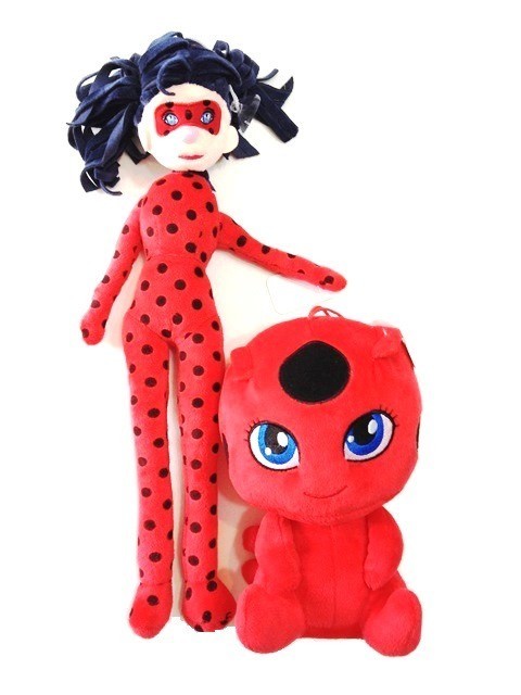 Set 2 jucarii de plus Buburuza, personajul din desenele Miraculos-Buburuza si Motan Noir