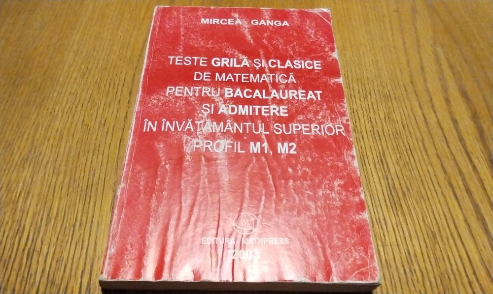 MIRCEA GANGA - Teste GRILA si Clasice de MATEMATICA pentru Bacalaureat si admitere Facultate - PROFIL M1, M2 - Mathpress, 2003, 375 p.