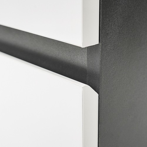 Combinația dintre corpul antracit și fațada albă conferă mobilei un aspect elegant și atemporal.