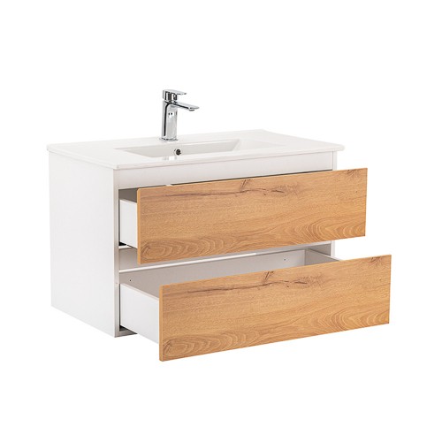 Mobilierul vine cu un lavoar ceramic cu design plat , care are un singur design pentru lavoar. Modern, estetic și ușor de curățat.
