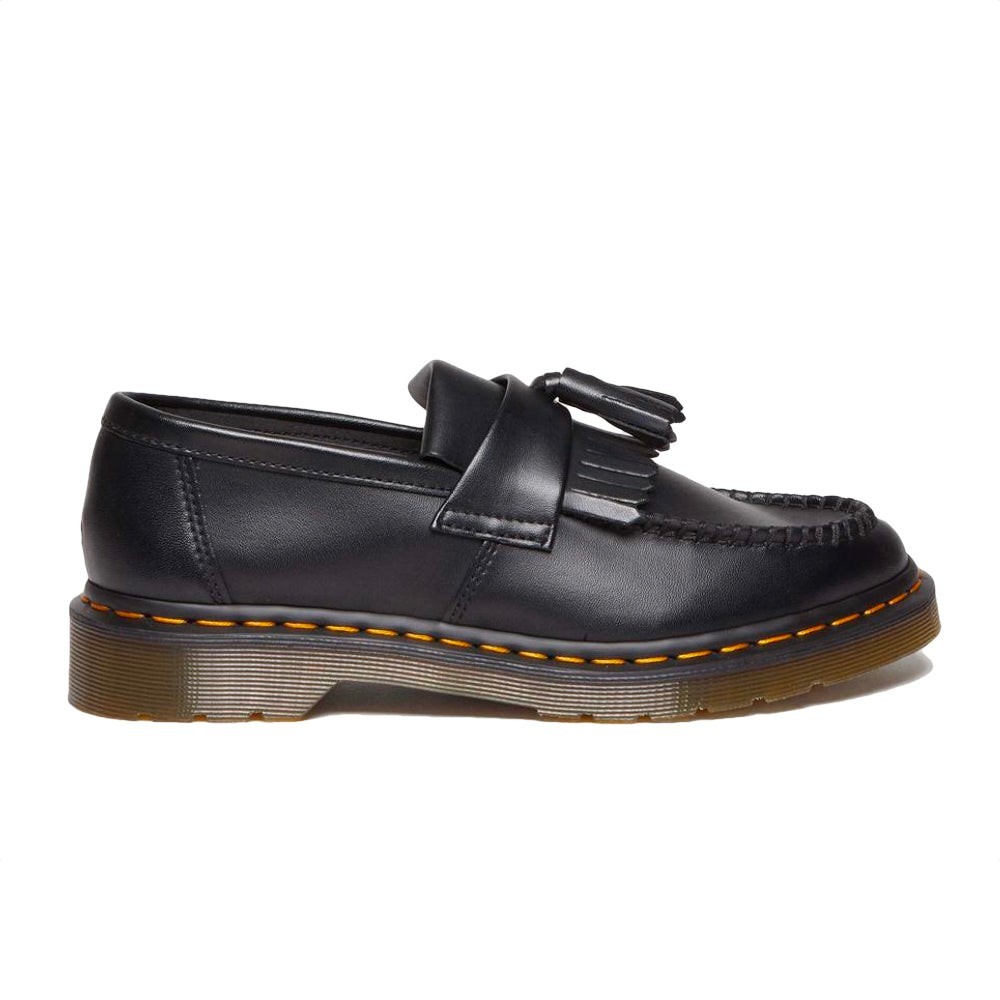 Dr. Martens Vegan Adrian Black Felix Rub Off 30744001 Tassel Loafer – loaferul clasic cu ciucuri, popularizat în anii ’50, rămâne o piesă atemporală. Modelul Adrian de la Dr. Martens nu te va lăsa indiferent. Găsești ADN-ul Dr. Martens și tehnologiile deja cunoscute – cusătura Goodyear (Goodyear welt) și talpa AirWair. 100% material sintetic vegan Sistemul de talpă cu pernuțe de aer Dr. Martens Heritage Fit (tinde să vină mai mic) Îngrijire cu ceara Dr. Martens Wonder Balsam Materiale: Partea superioară: 100% material sintetic vegan Interior: 100% material textil Talpă: 100% PVC