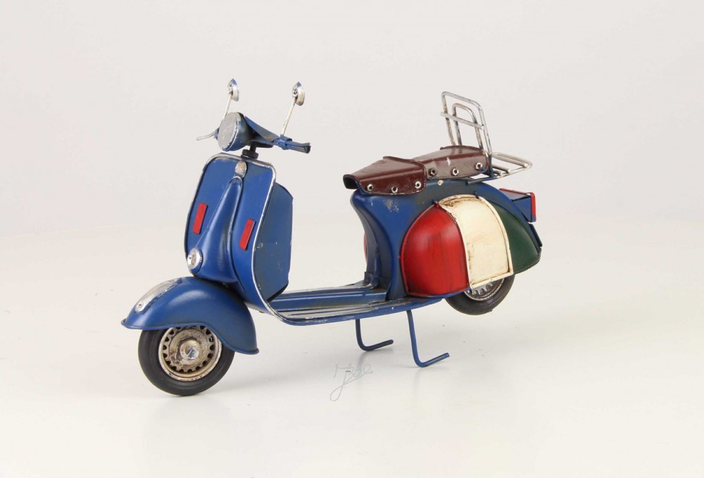 Un model de scuter italian, foarte frumos executat, ideal pentru o colectie. Dimensiuni:27*17*18 cm; Scuterul se remarca prin acuratetea cu care sunt redate detaliile, fiind realizat integral manual, ideal pentru a fi facut cadou sau ca si cadou.